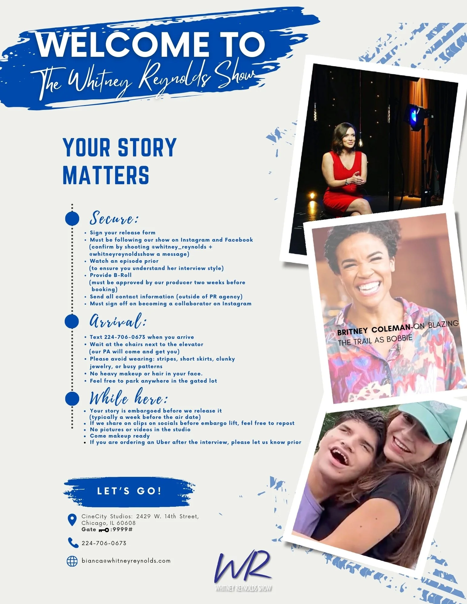 Watch an episode prior to coming in to understand Whitney’s interview style here: https://www.pbs.org/show/whitney-reynolds-show/